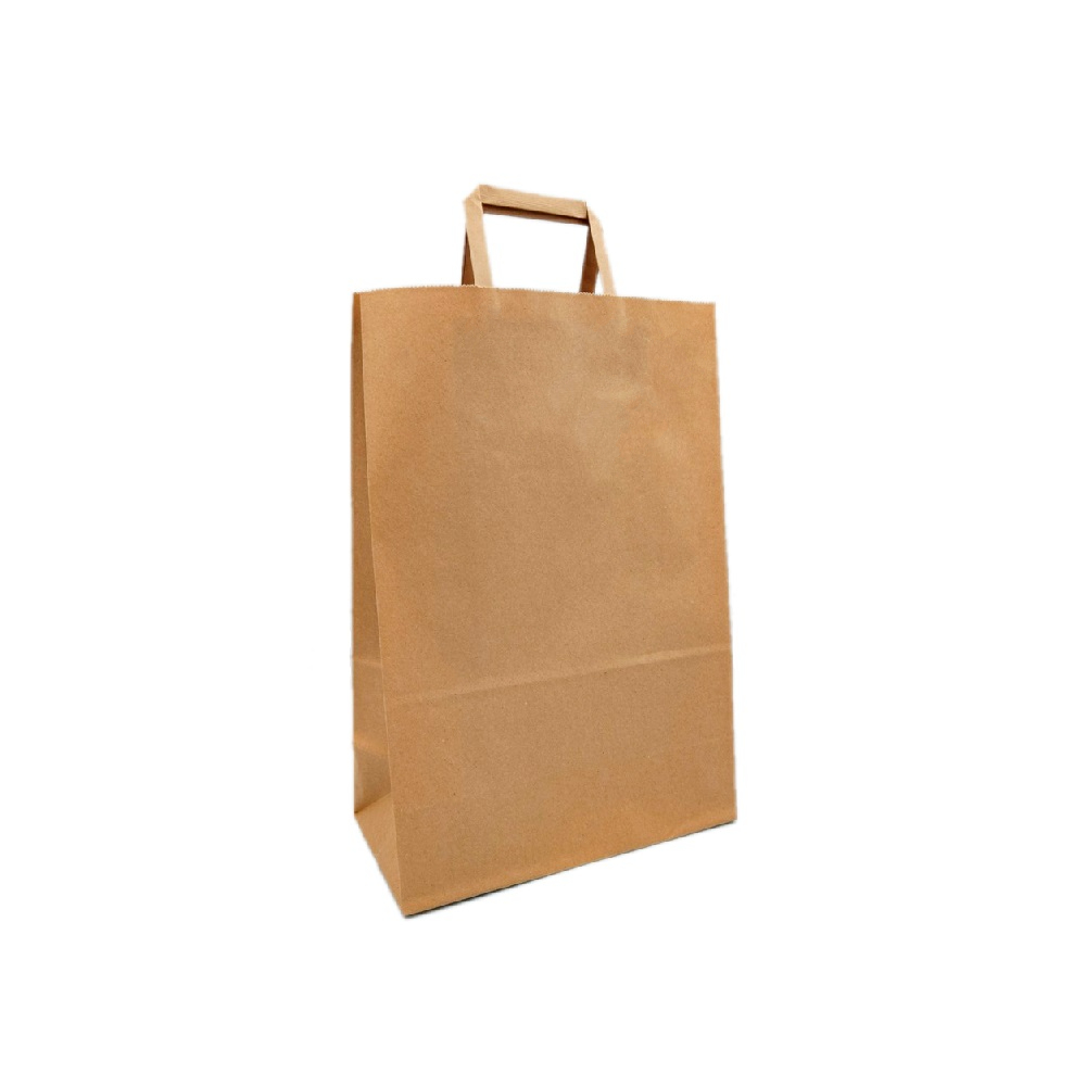 Bolsa de 21+11×25 en papel kraft natural con asa plana sin impresión