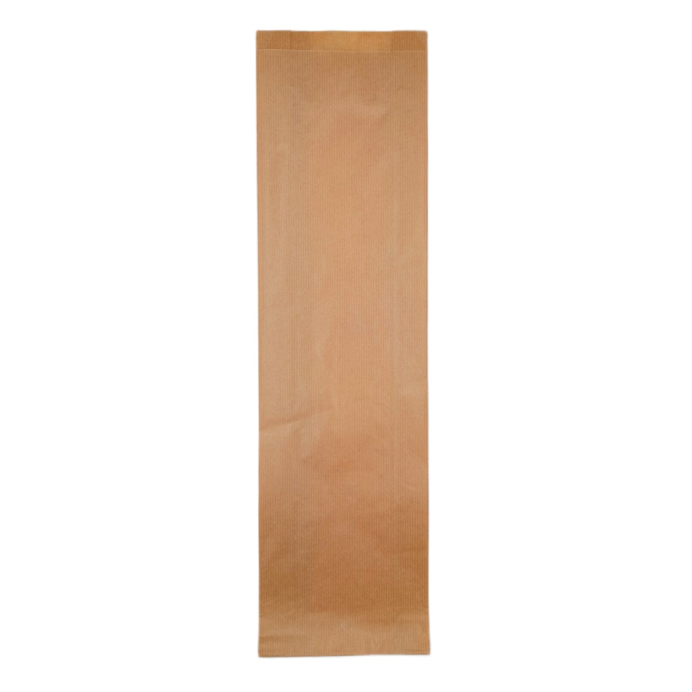 Bolsa de papel kraft natural tipo sobre, sin asas, con fuelles en los laterales y sin impresión. Especial para barra de pan.